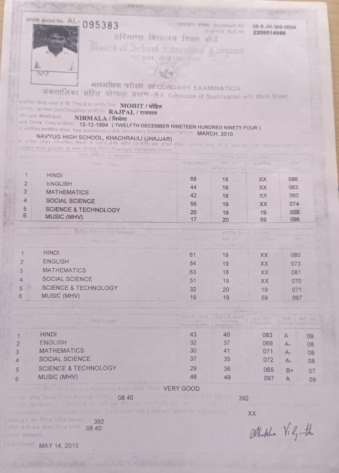 | Exam | Full Marks | Pass Marks | Marks Obtained |