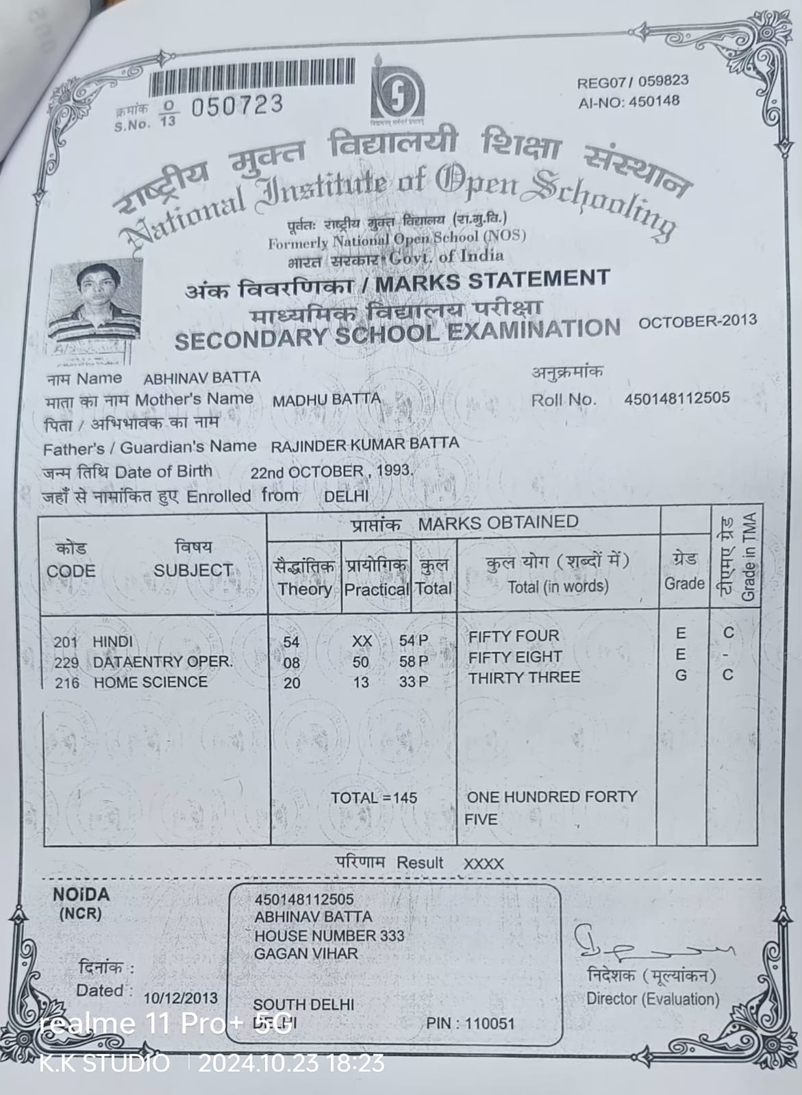 | : | Chander Vihar, Mandawali Delhi-92, East Delhi | |
