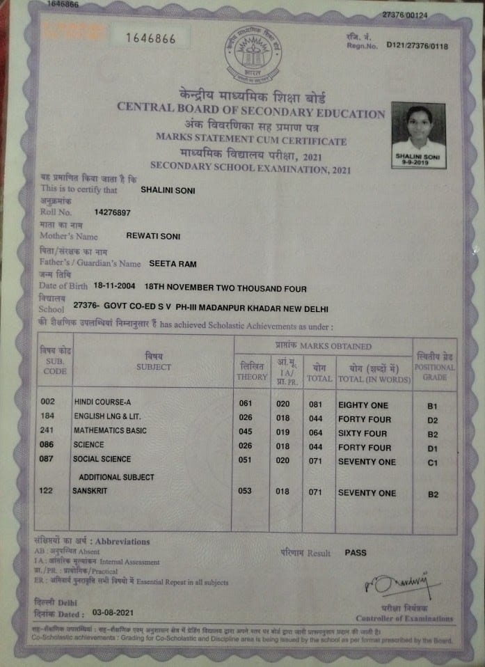 | Exam | Full Marks | Pass Marks | Marks Obtained |
