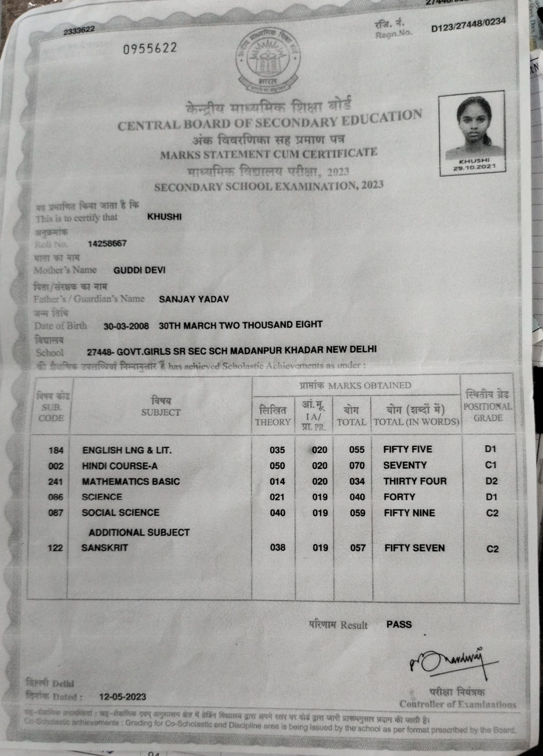 | Exam | Full Marks | Pass Marks | Marks Obtained |