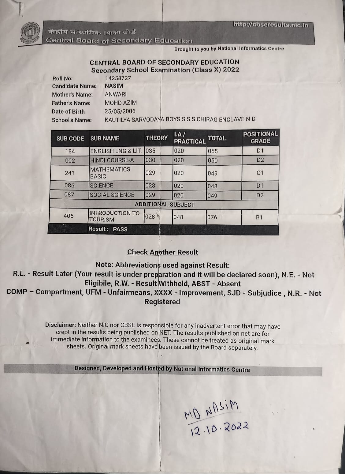 | Exam | Full Marks | Pass Marks | Marks Obtained |