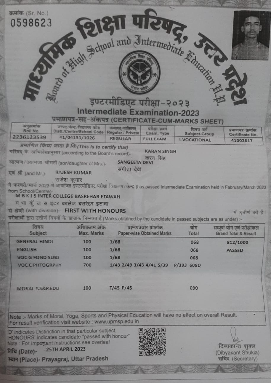 | Exam | Full Marks | Pass Marks | Marks Obtained |