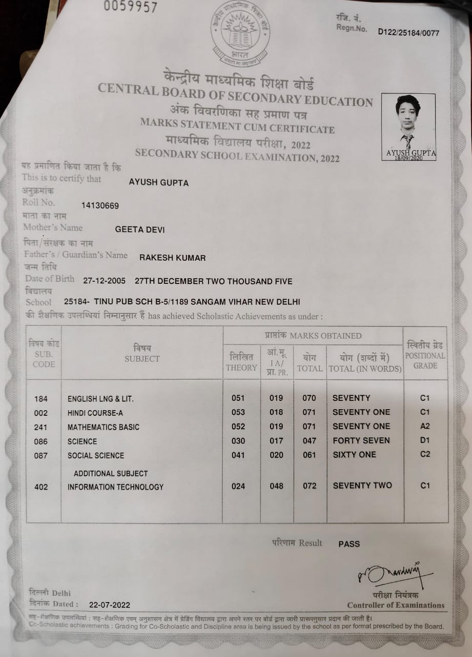 | Exam | Full Marks | Pass Marks | Marks Obtained |