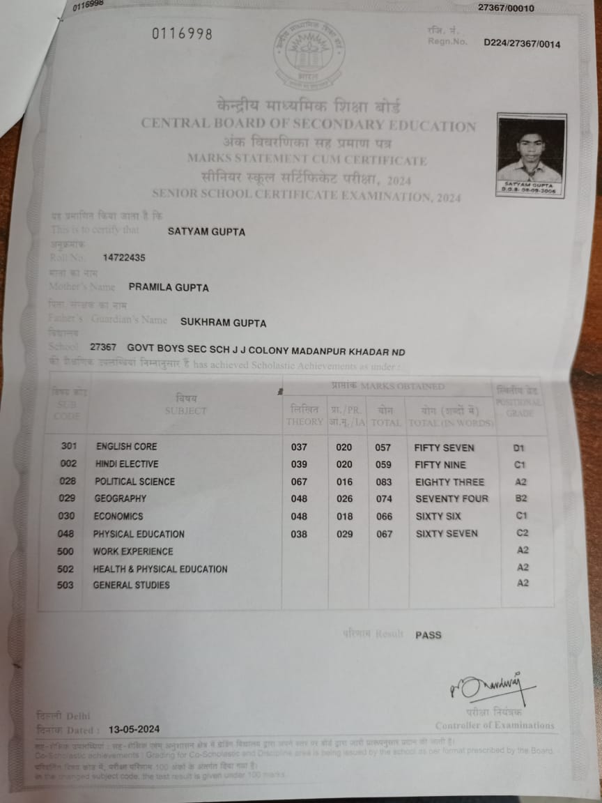 | Exam | Full Marks | Pass Marks | Marks Obtained |