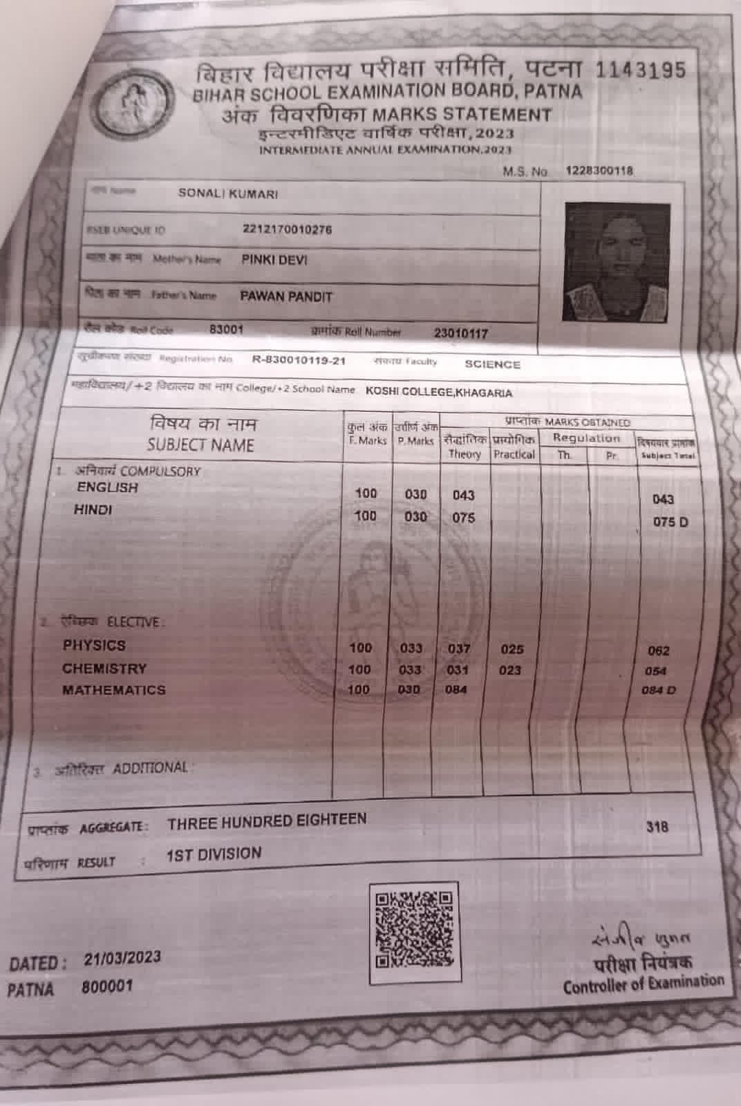 | Exam | Full Marks | Pass Marks | Marks Obtained |