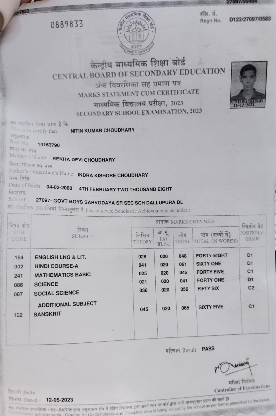 | Exam | Full Marks | Pass Marks | Marks Obtained |