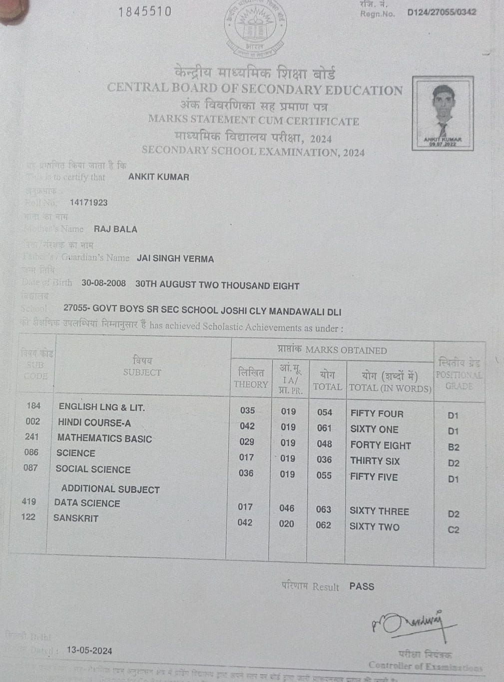 | Exam | Full Marks | Pass Marks | Marks Obtained |