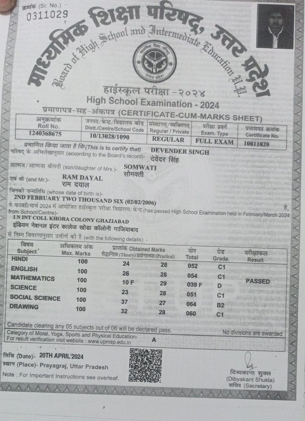 | Exam | Full Marks | Pass Marks | Marks Obtained |