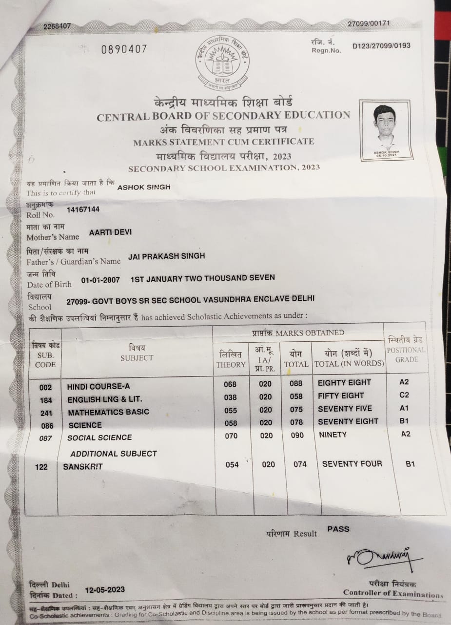 | Exam | Full Marks | Pass Marks | Marks Obtained |