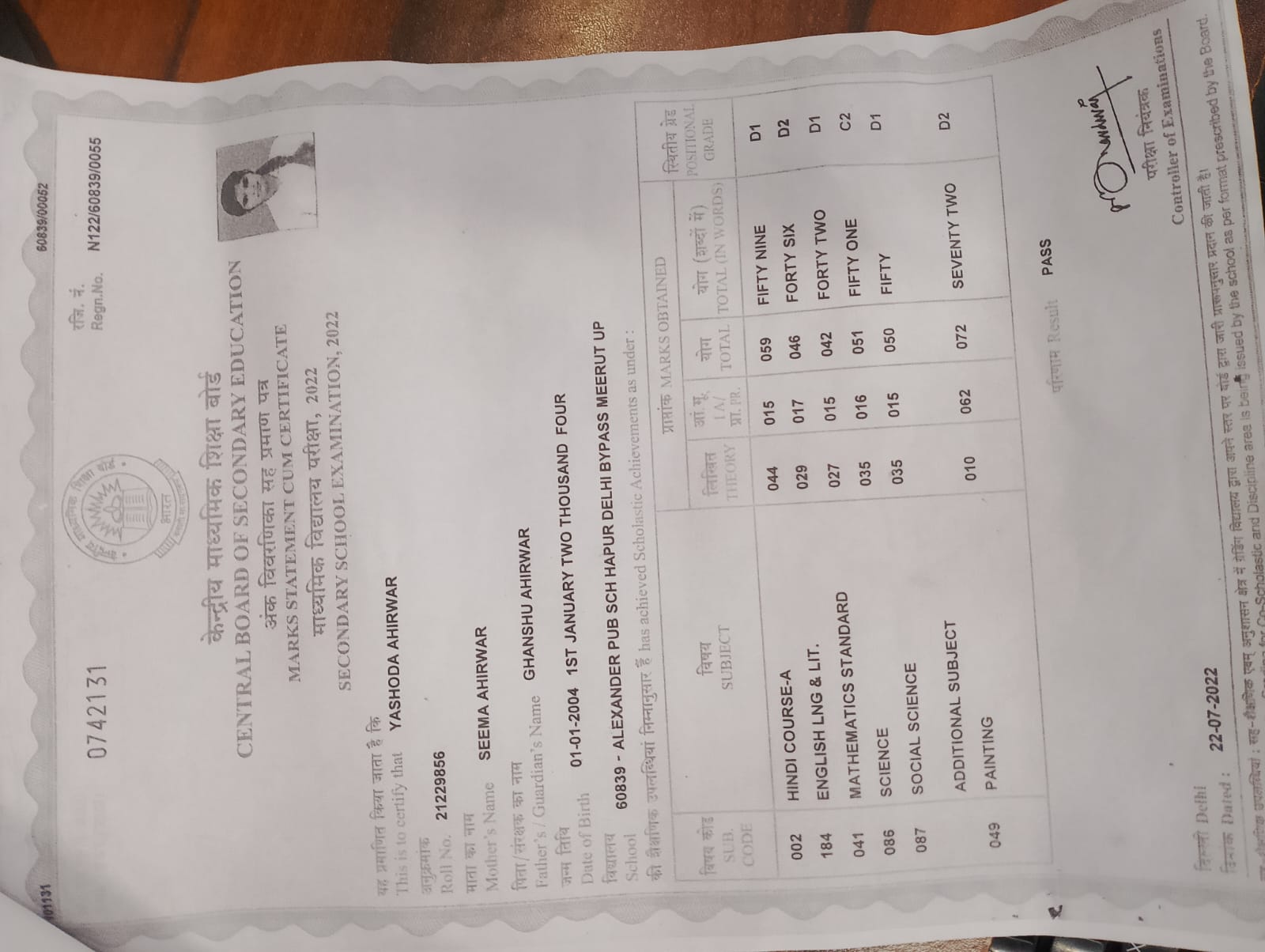 | Exam | Full Marks | Pass Marks | Marks Obtained |