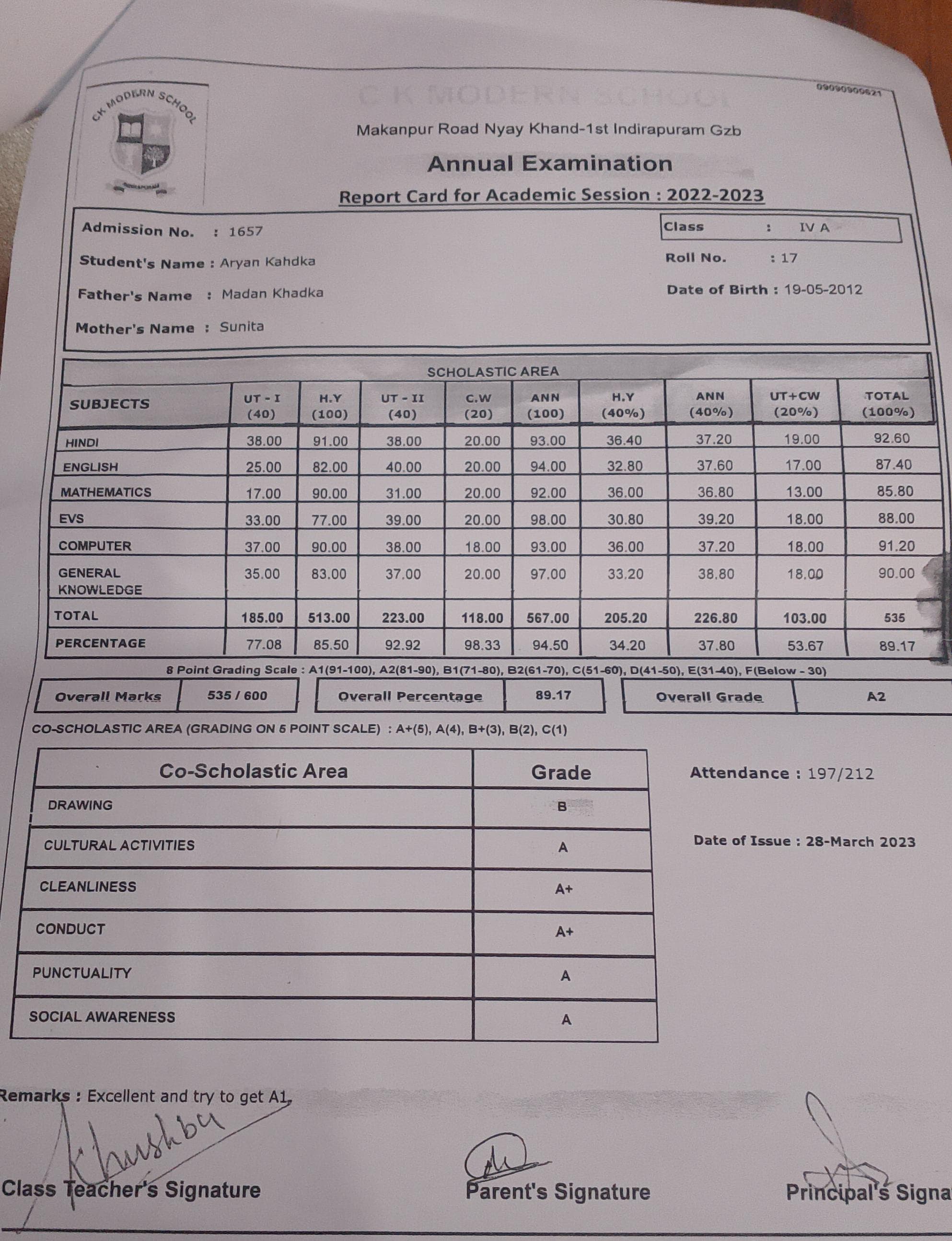 | Exam | Full Marks | Pass Marks | Marks Obtained |