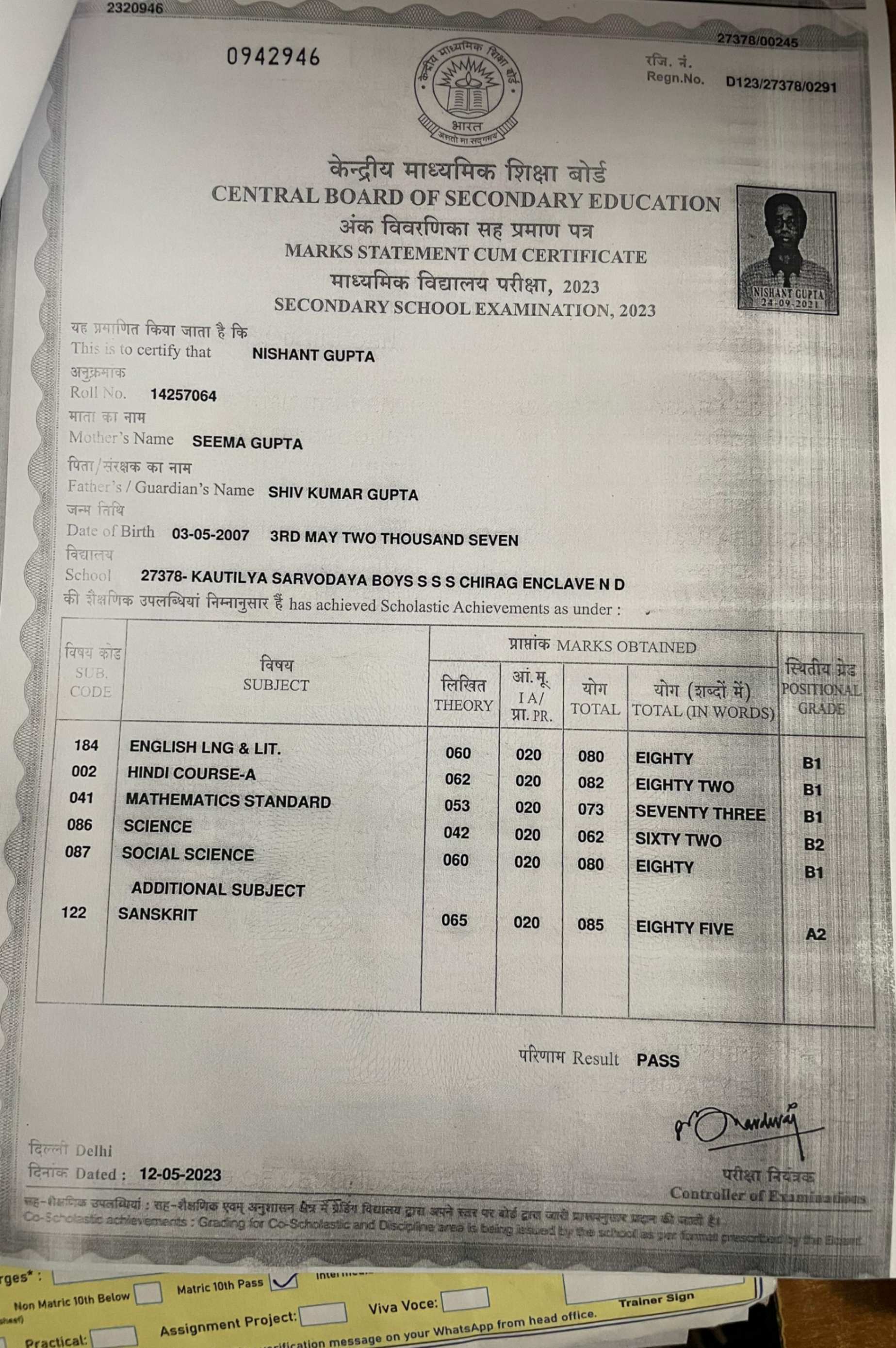 | Exam | Full Marks | Pass Marks | Marks Obtained |