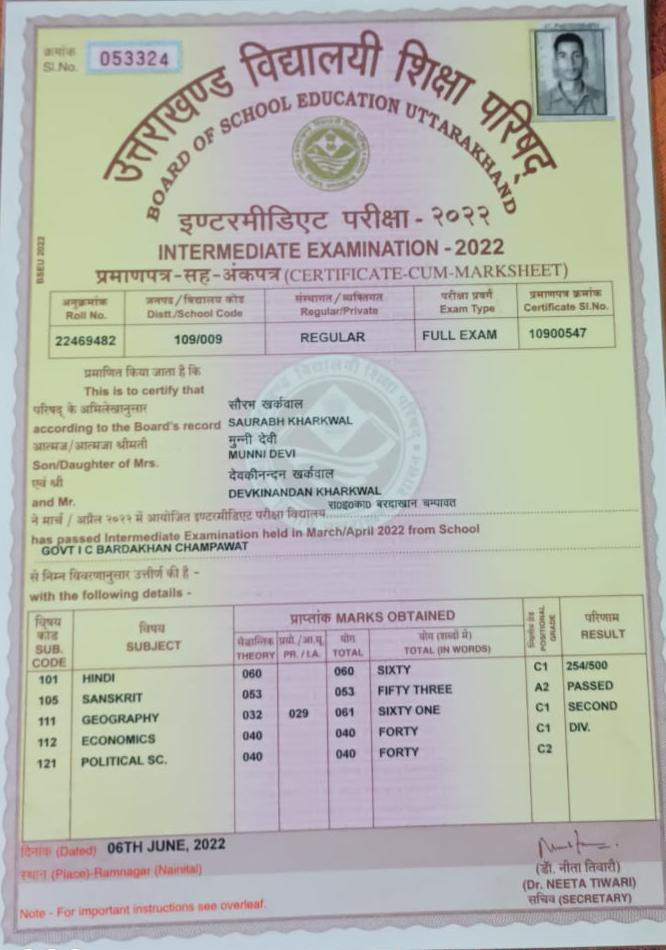 | Exam | Full Marks | Pass Marks | Marks Obtained |