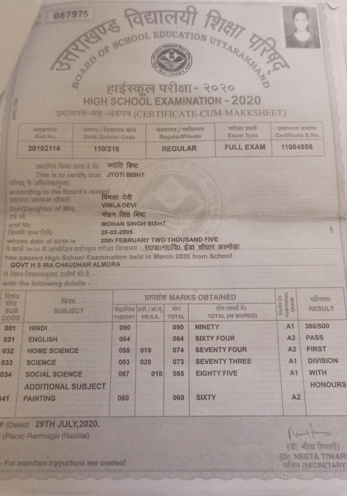 | Exam | Full Marks | Pass Marks | Marks Obtained |