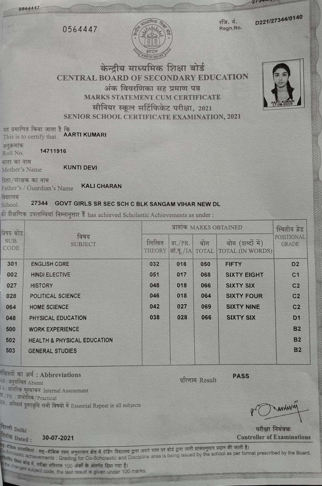 | Exam | Full Marks | Pass Marks | Marks Obtained |
