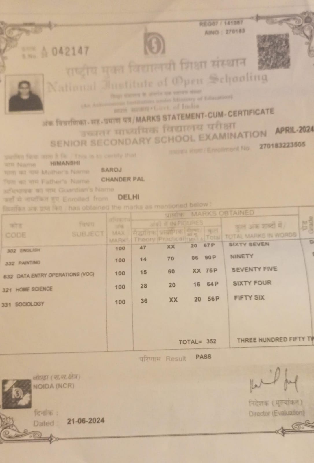 | Exam | Full Marks | Pass Marks | Marks Obtained |