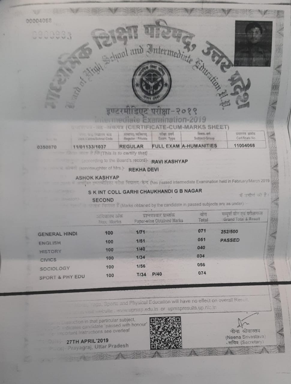 | Exam | Full Marks | Pass Marks | Marks Obtained |