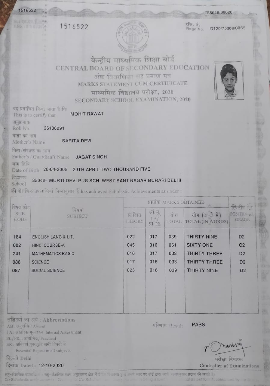 | Exam | Full Marks | Pass Marks | Marks Obtained |
