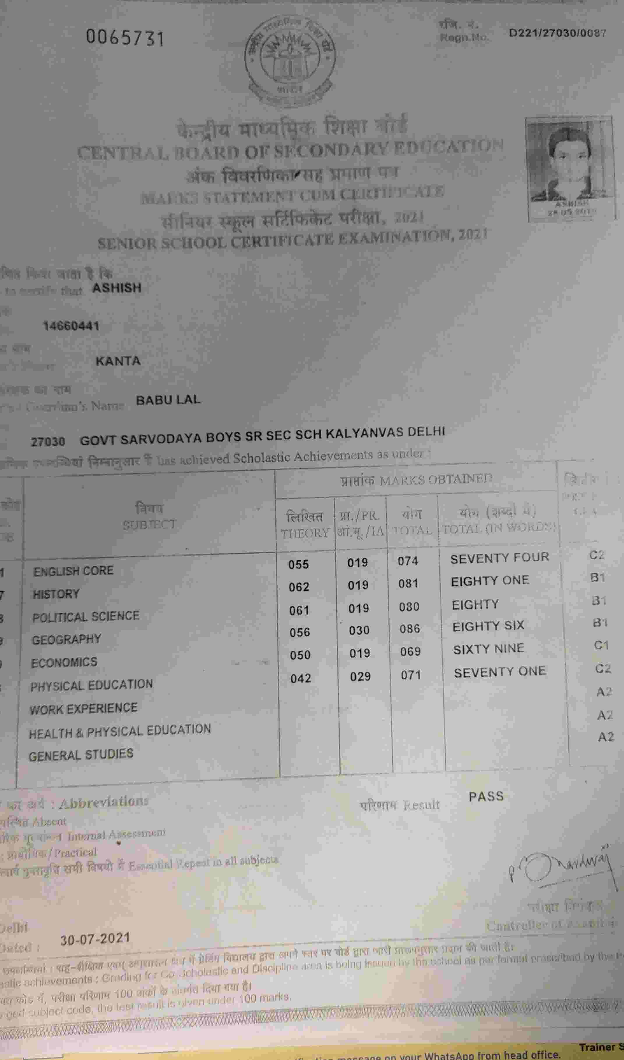 | Exam | Full Marks | Pass Marks | Marks Obtained |