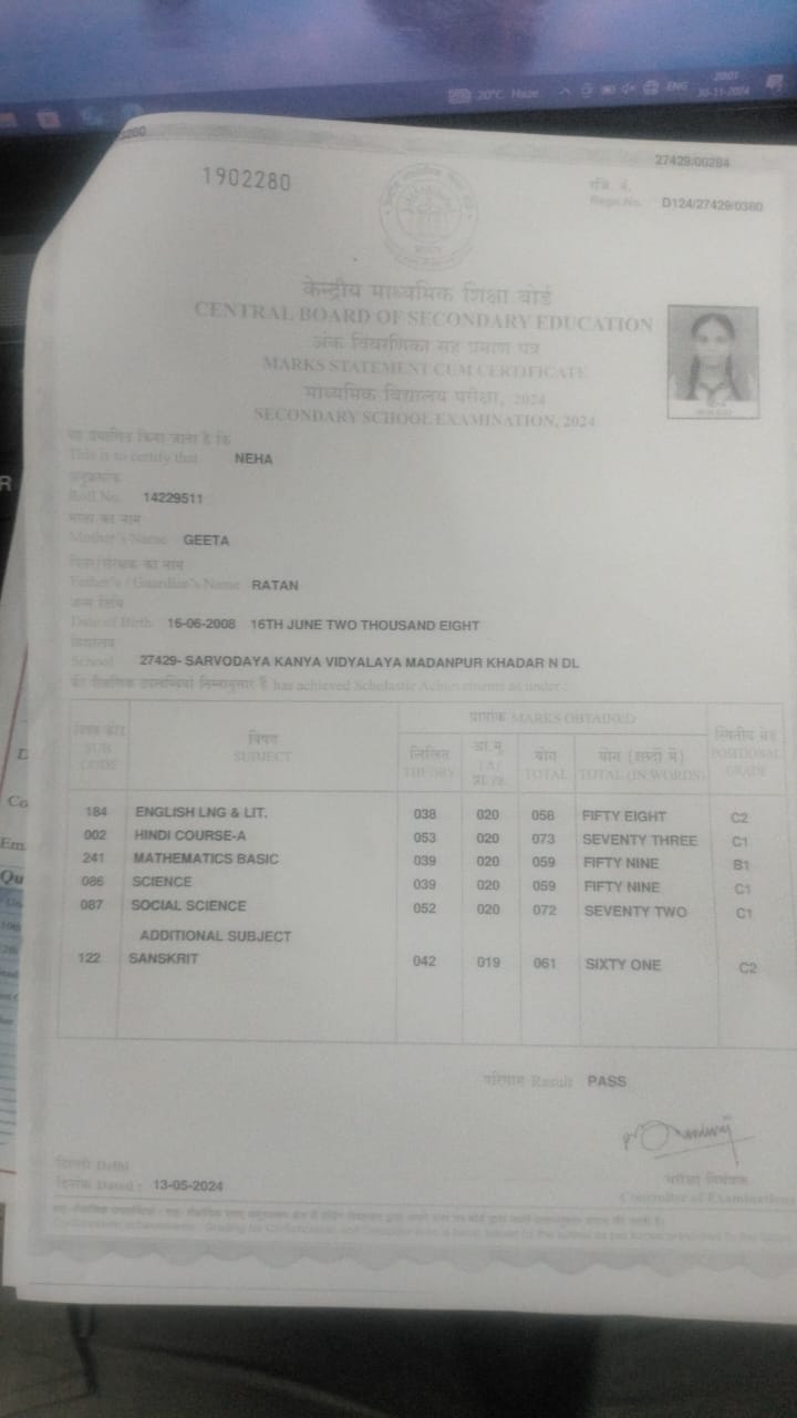 | Exam | Full Marks | Pass Marks | Marks Obtained |
