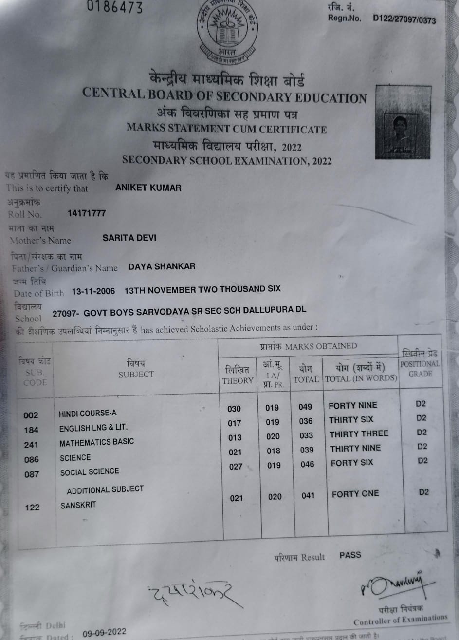 | Exam | Full Marks | Pass Marks | Marks Obtained |