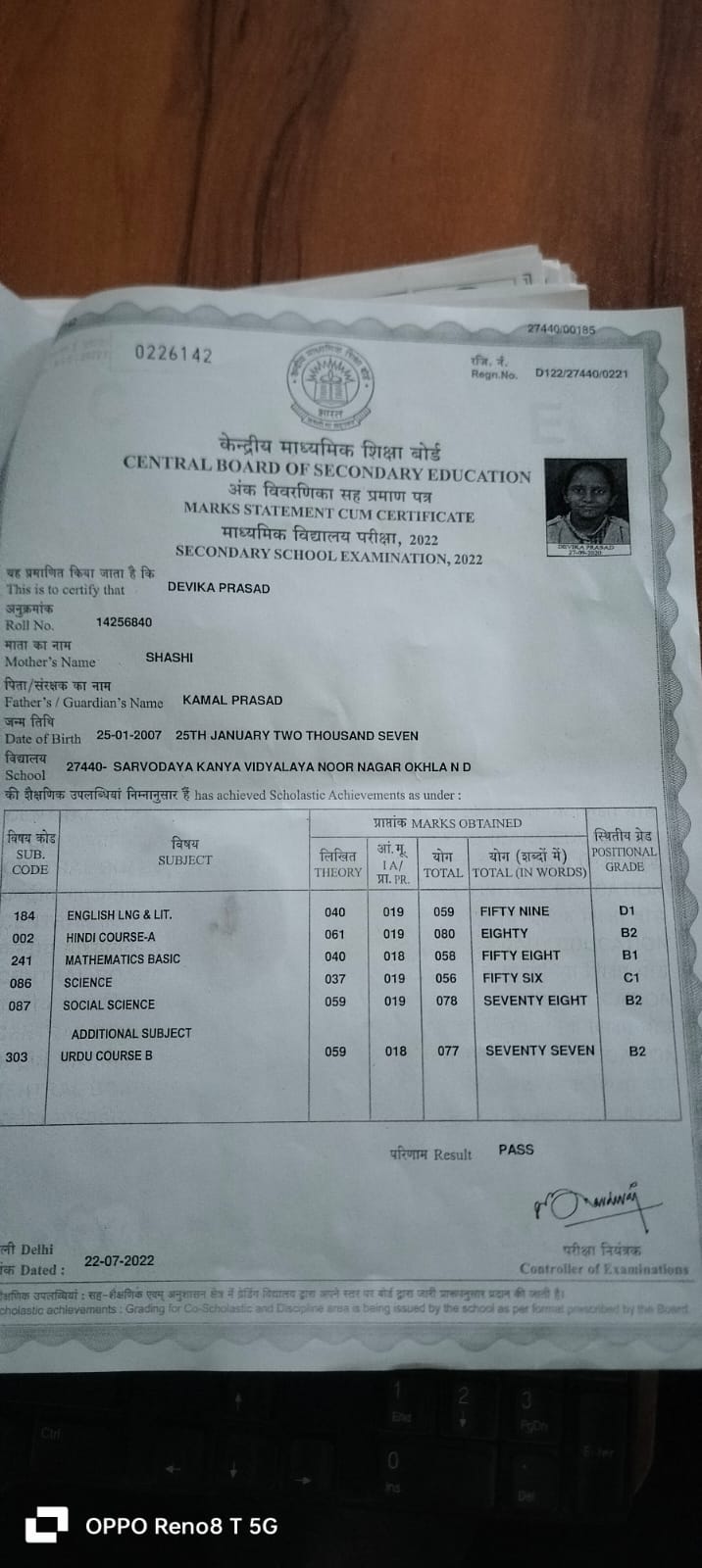 | Exam | Full Marks | Pass Marks | Marks Obtained |