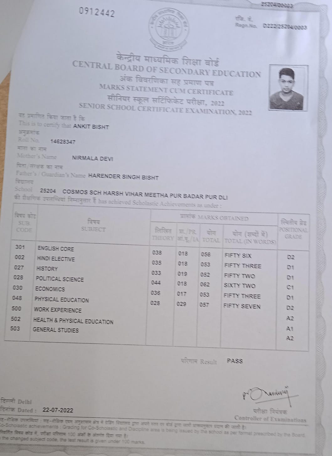 | Exam | Full Marks | Pass Marks | Marks Obtained |