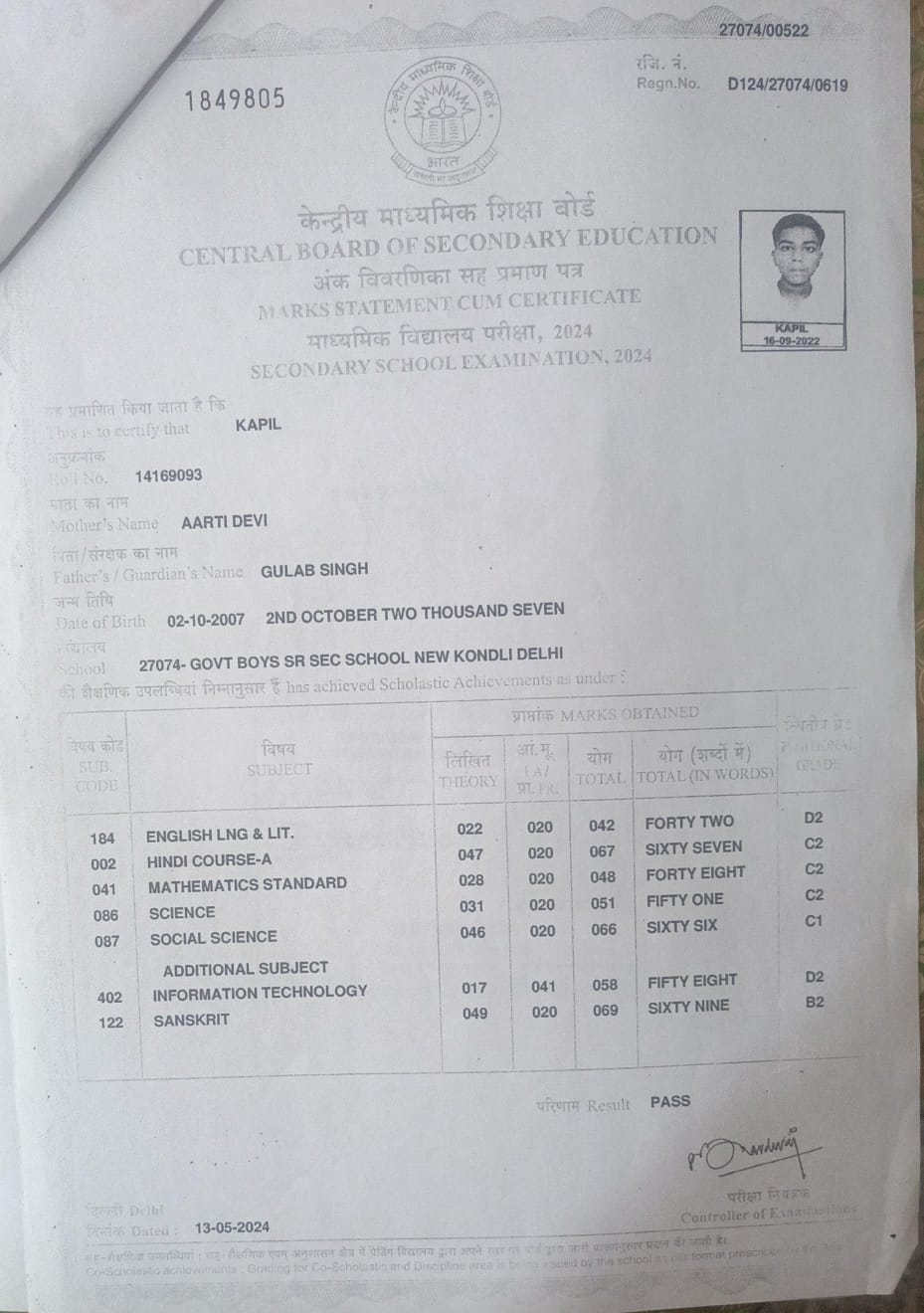 | Exam | Full Marks | Pass Marks | Marks Obtained |