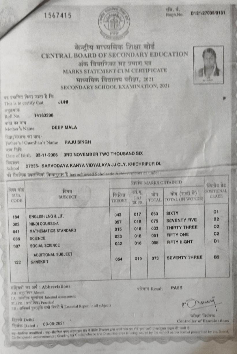 | Exam | Full Marks | Pass Marks | Marks Obtained |