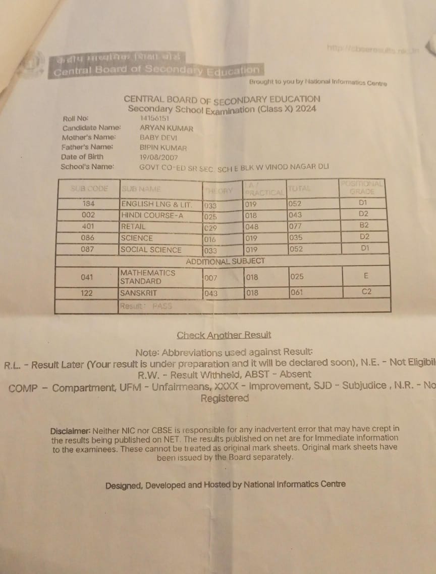 | Exam | Full Marks | Pass Marks | Marks Obtained |