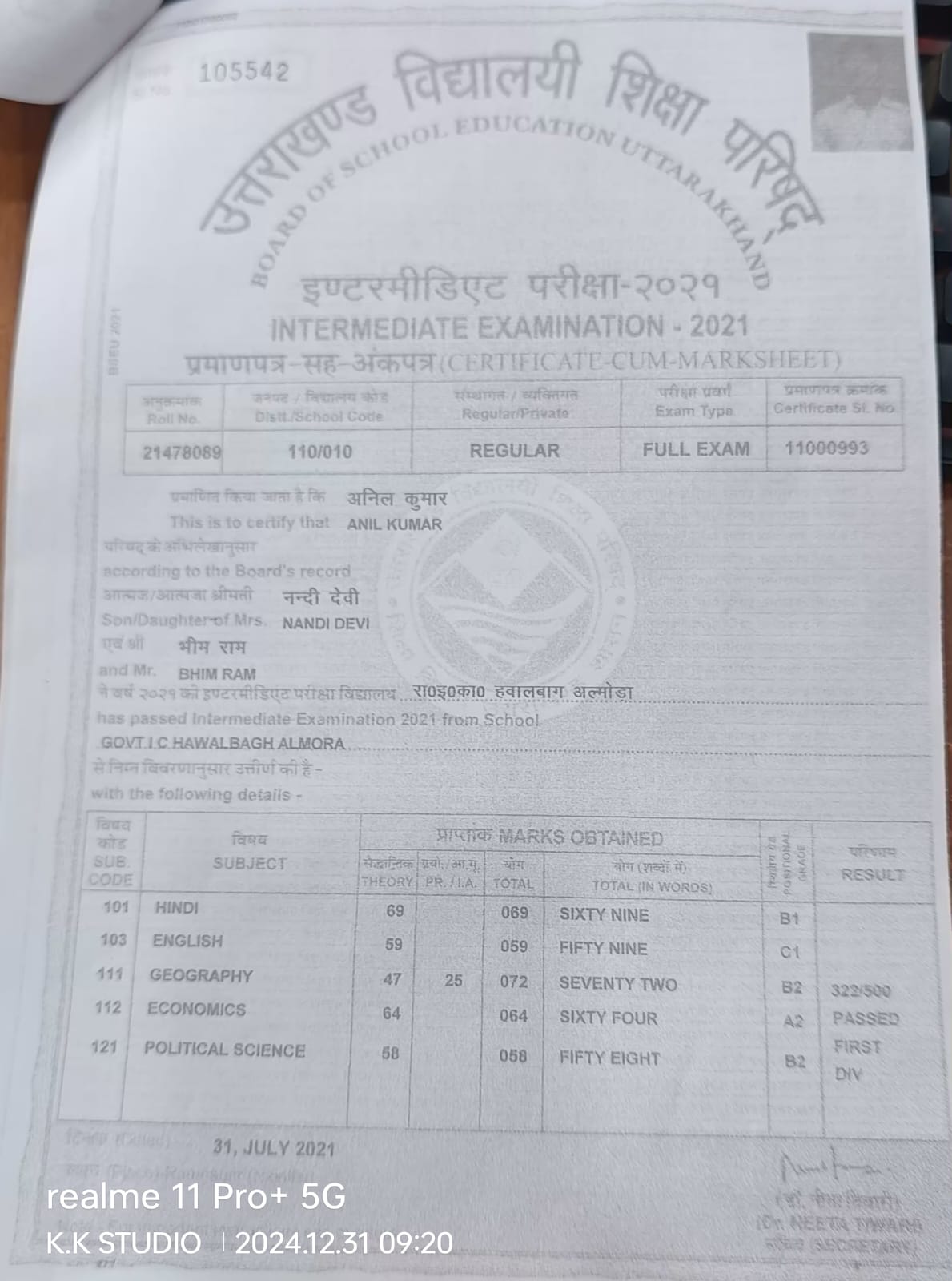 | Exam | Full Marks | Pass Marks | Marks Obtained |
