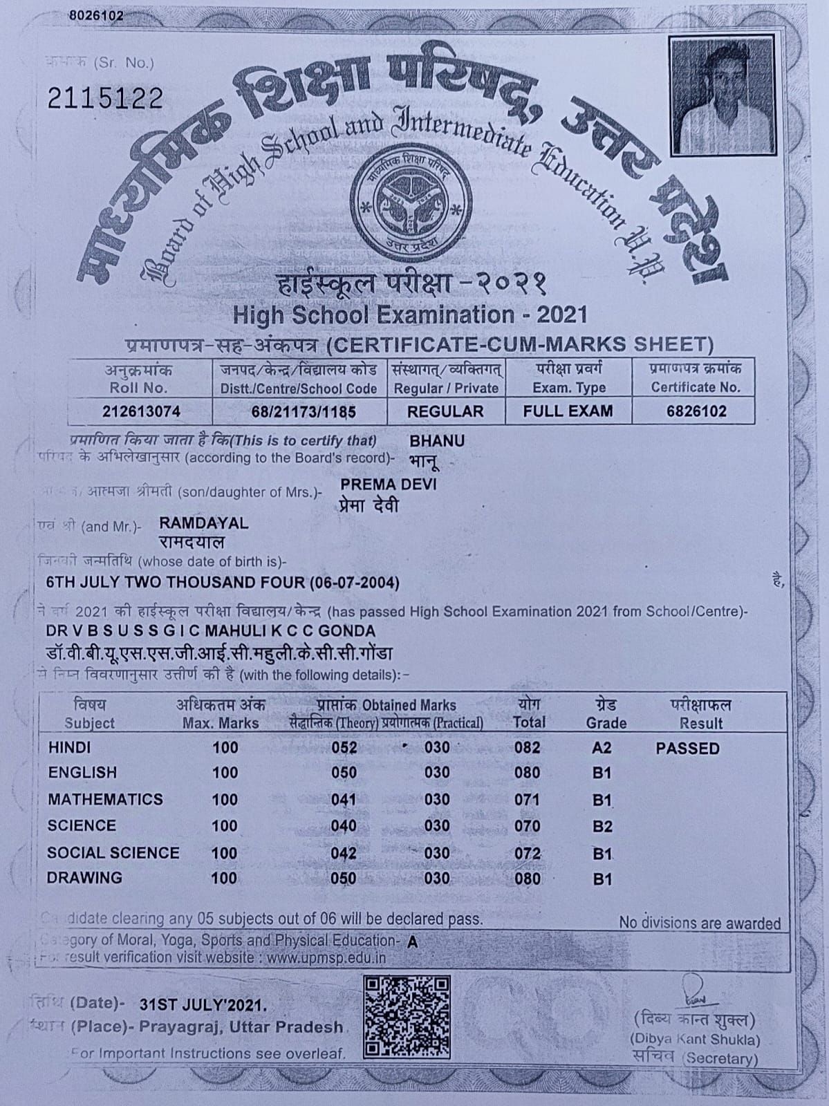 | Exam | Full Marks | Pass Marks | Marks Obtained |