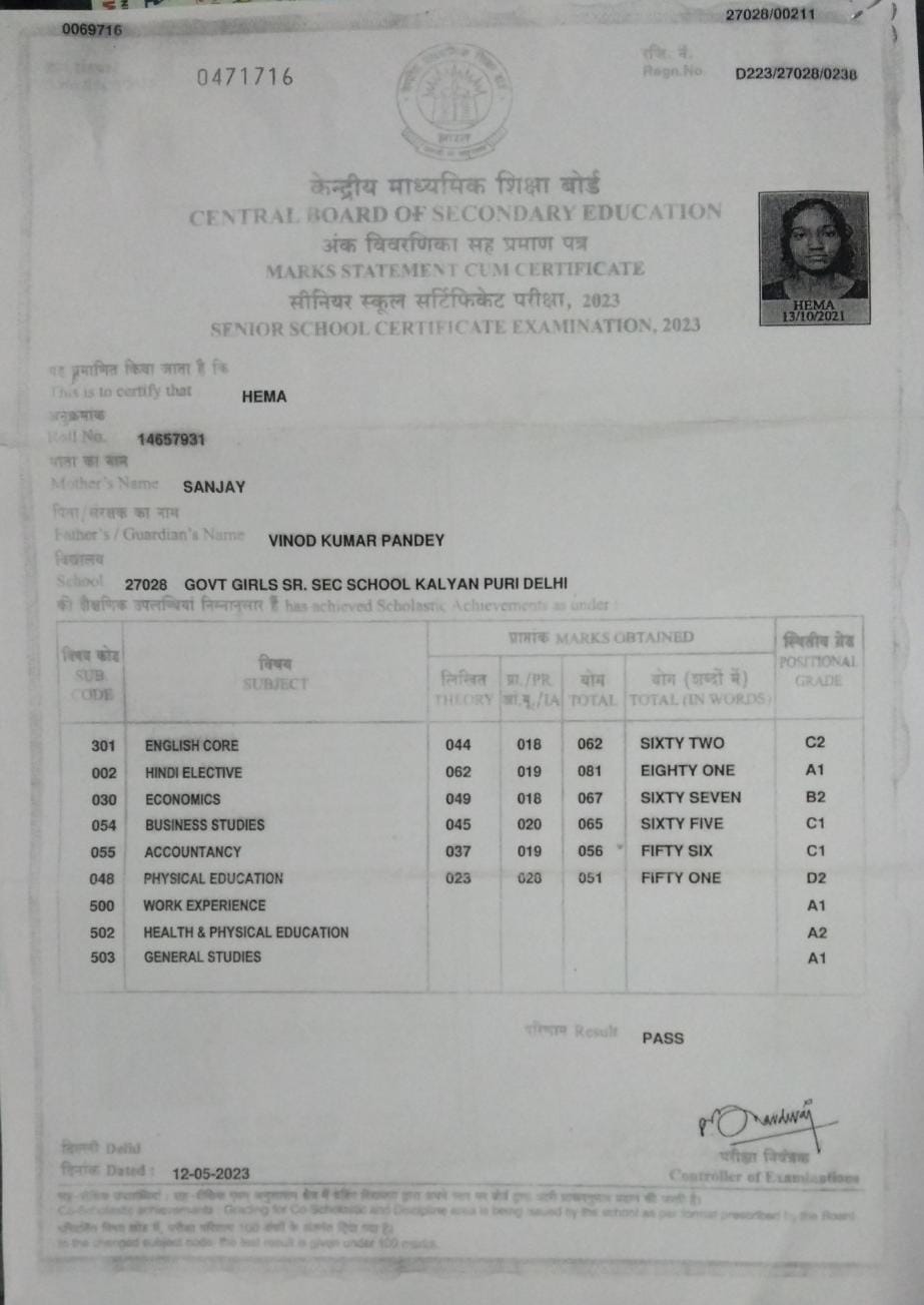 | Exam | Full Marks | Pass Marks | Marks Obtained |