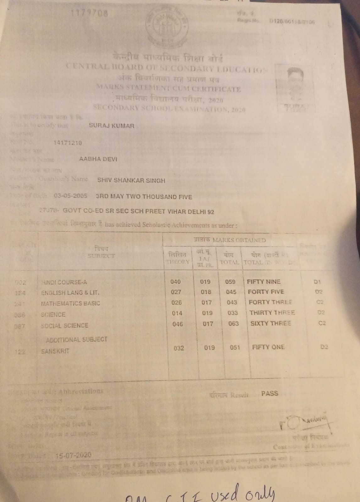 | Exam | Full Marks | Pass Marks | Marks Obtained |