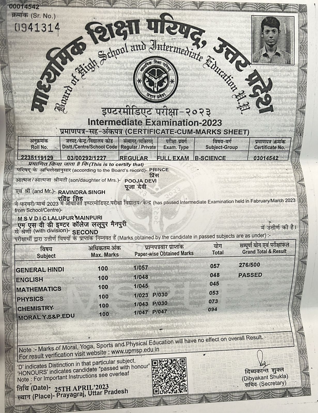 | Exam | Full Marks | Pass Marks | Marks Obtained |