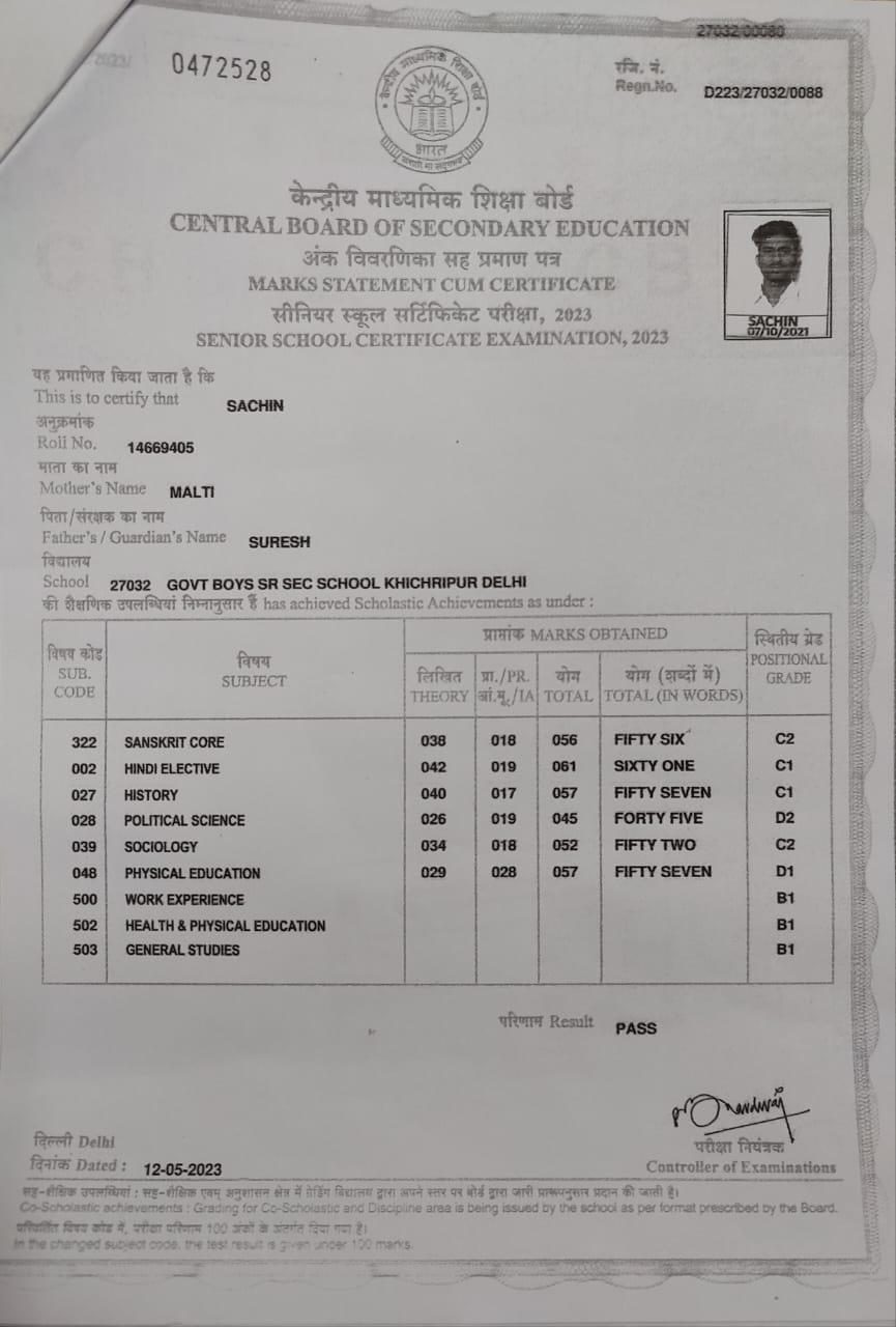 | Exam | Full Marks | Pass Marks | Marks Obtained |