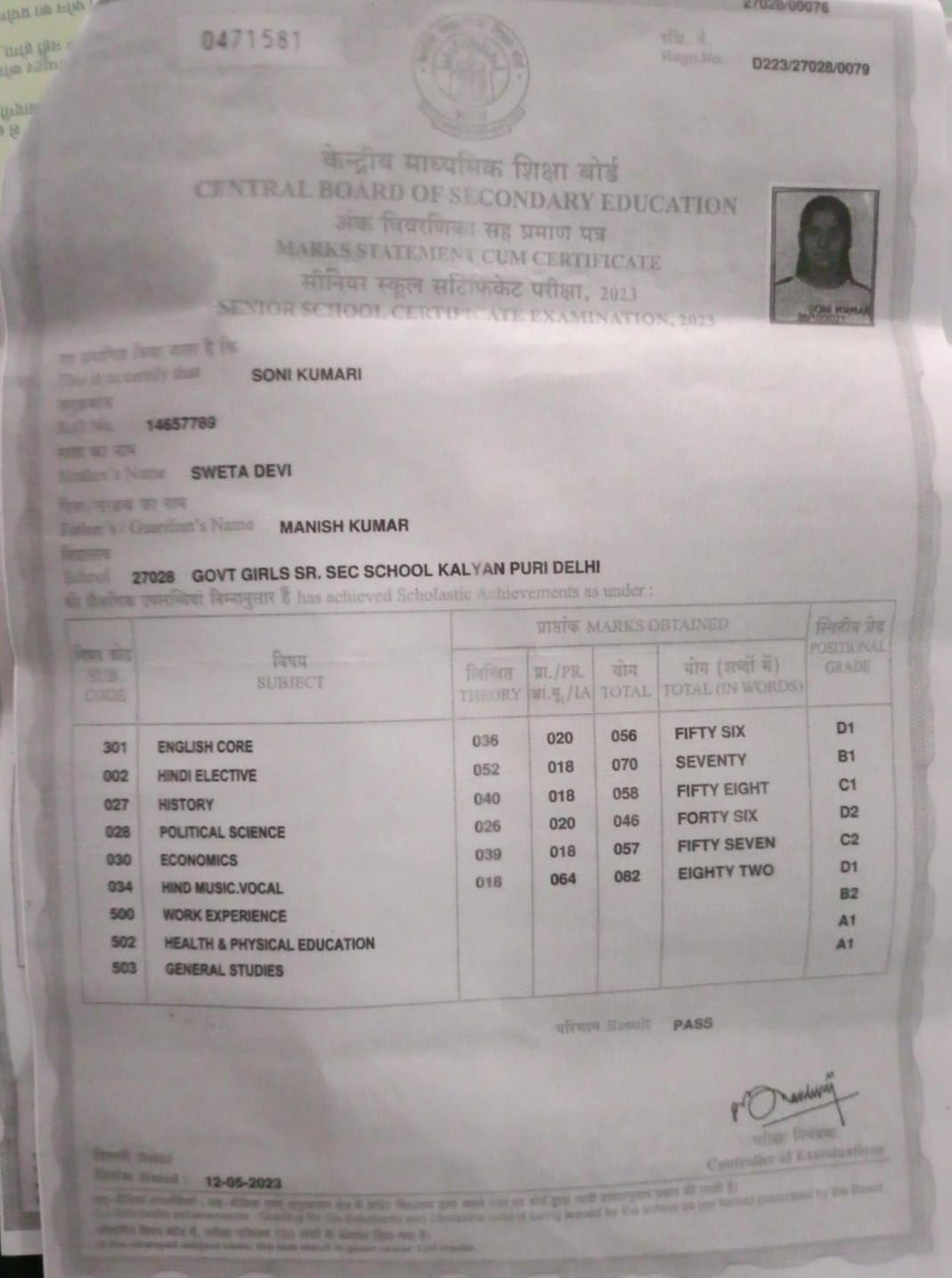 | Exam | Full Marks | Pass Marks | Marks Obtained |