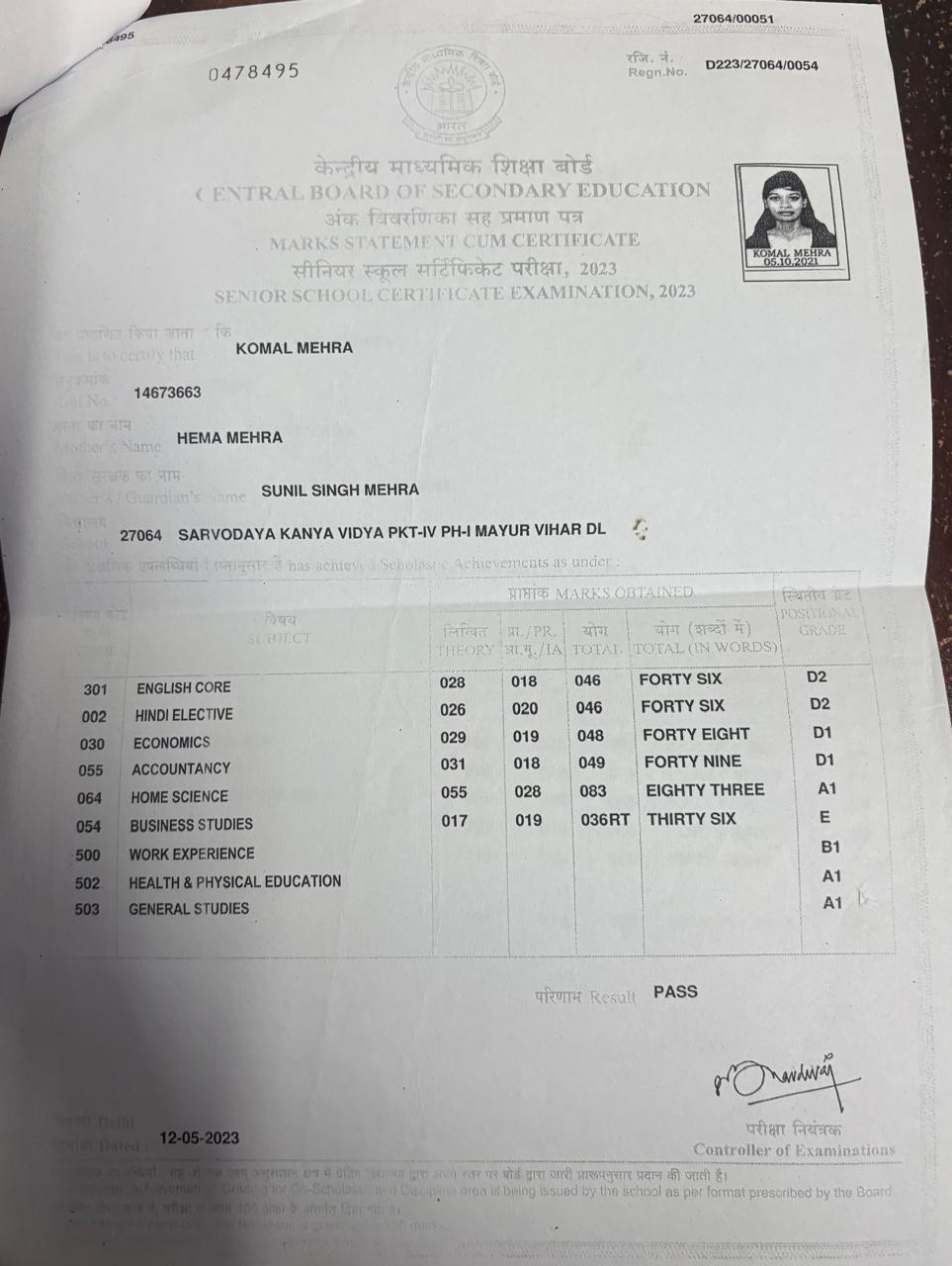 | Exam | Full Marks | Pass Marks | Marks Obtained |
