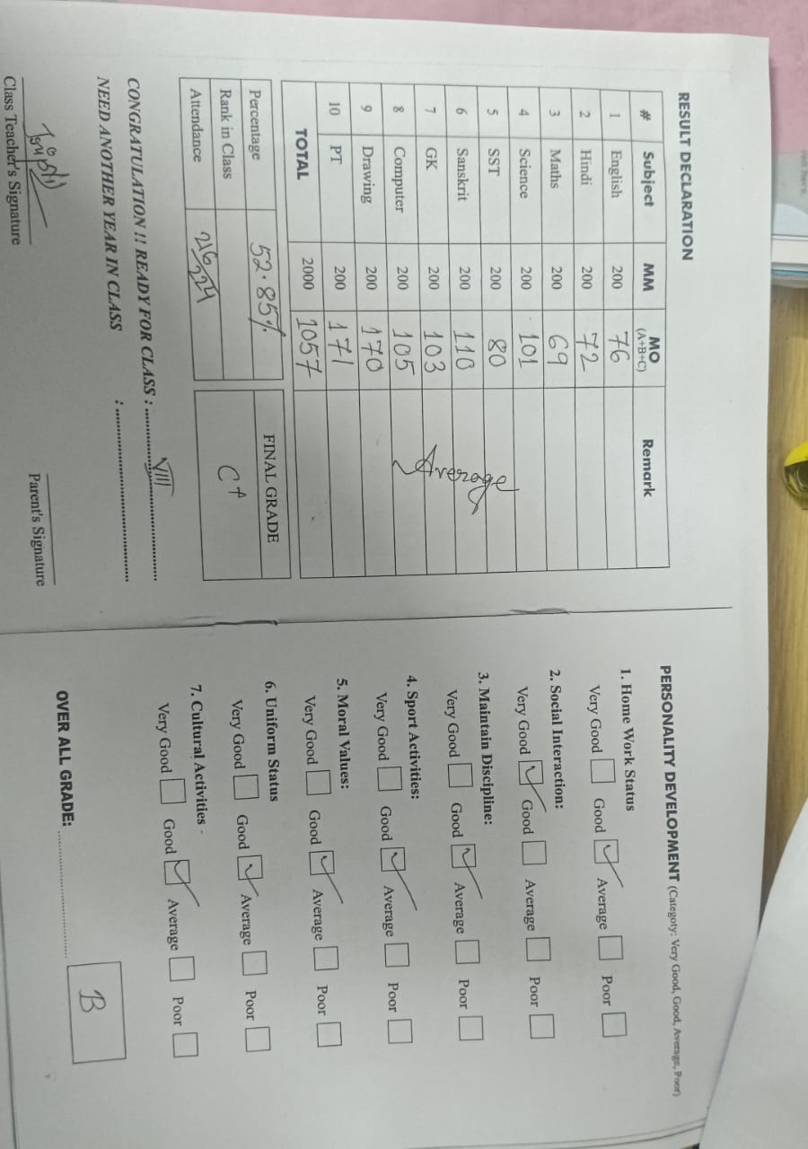 | Exam | Full Marks | Pass Marks | Marks Obtained |