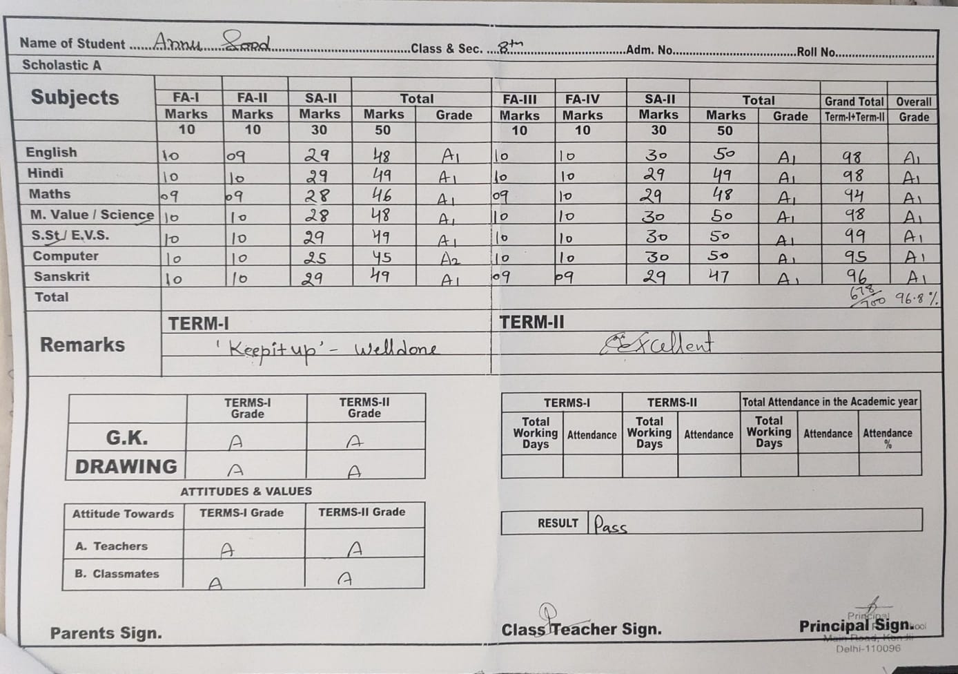| Exam | Full Marks | Pass Marks | Marks Obtained |