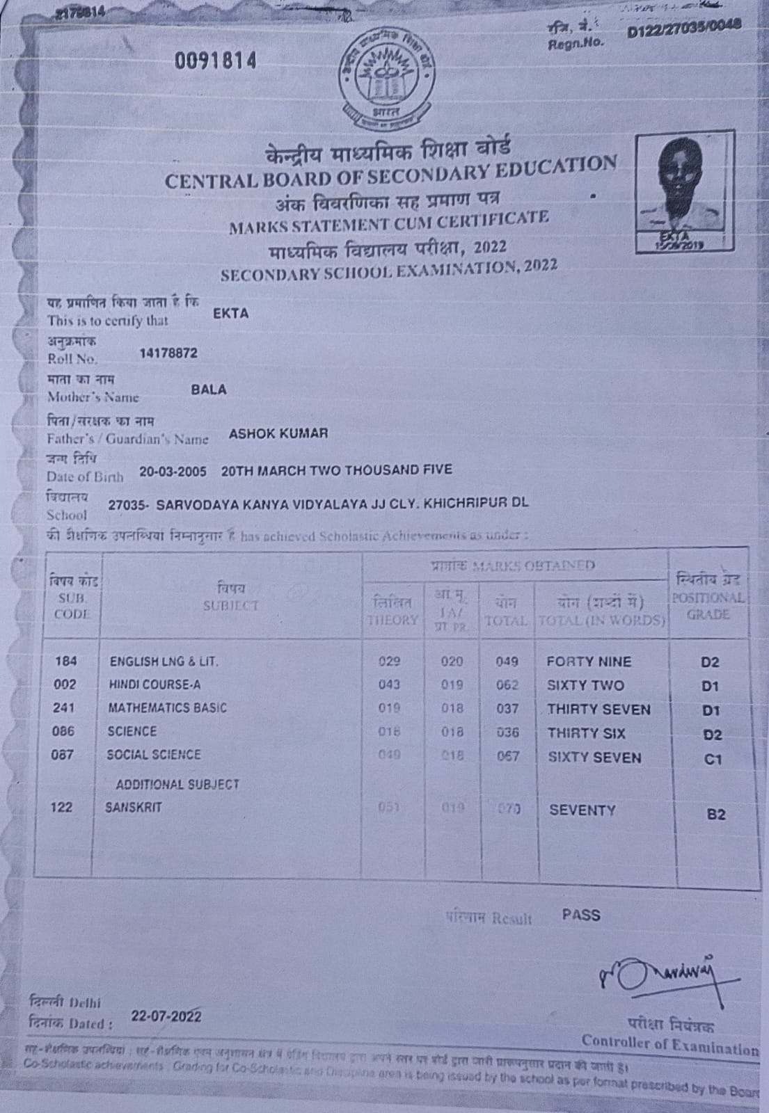 | Exam | Full Marks | Pass Marks | Marks Obtained |