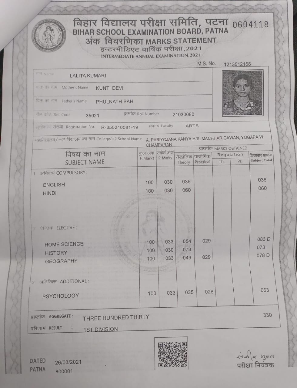 | Exam | Full Marks | Pass Marks | Marks Obtained |