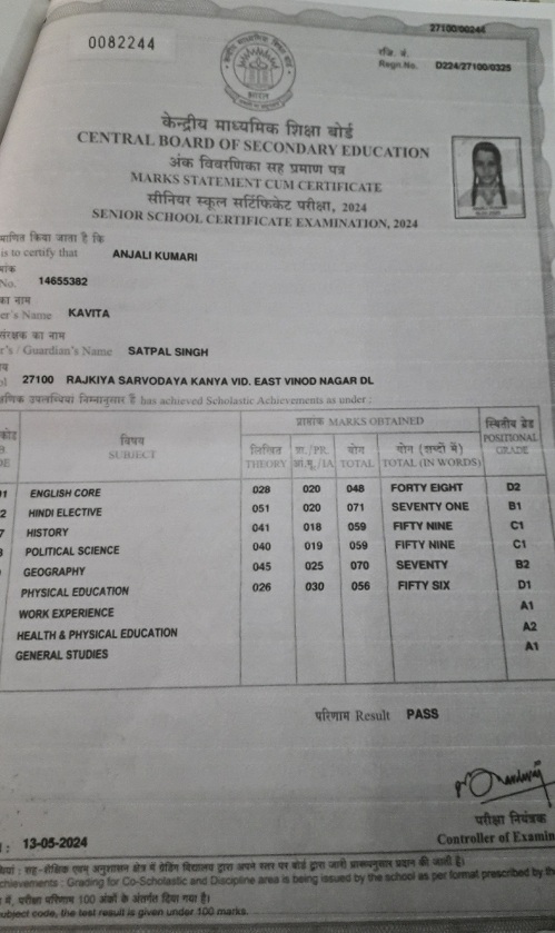 | Exam | Full Marks | Pass Marks | Marks Obtained |