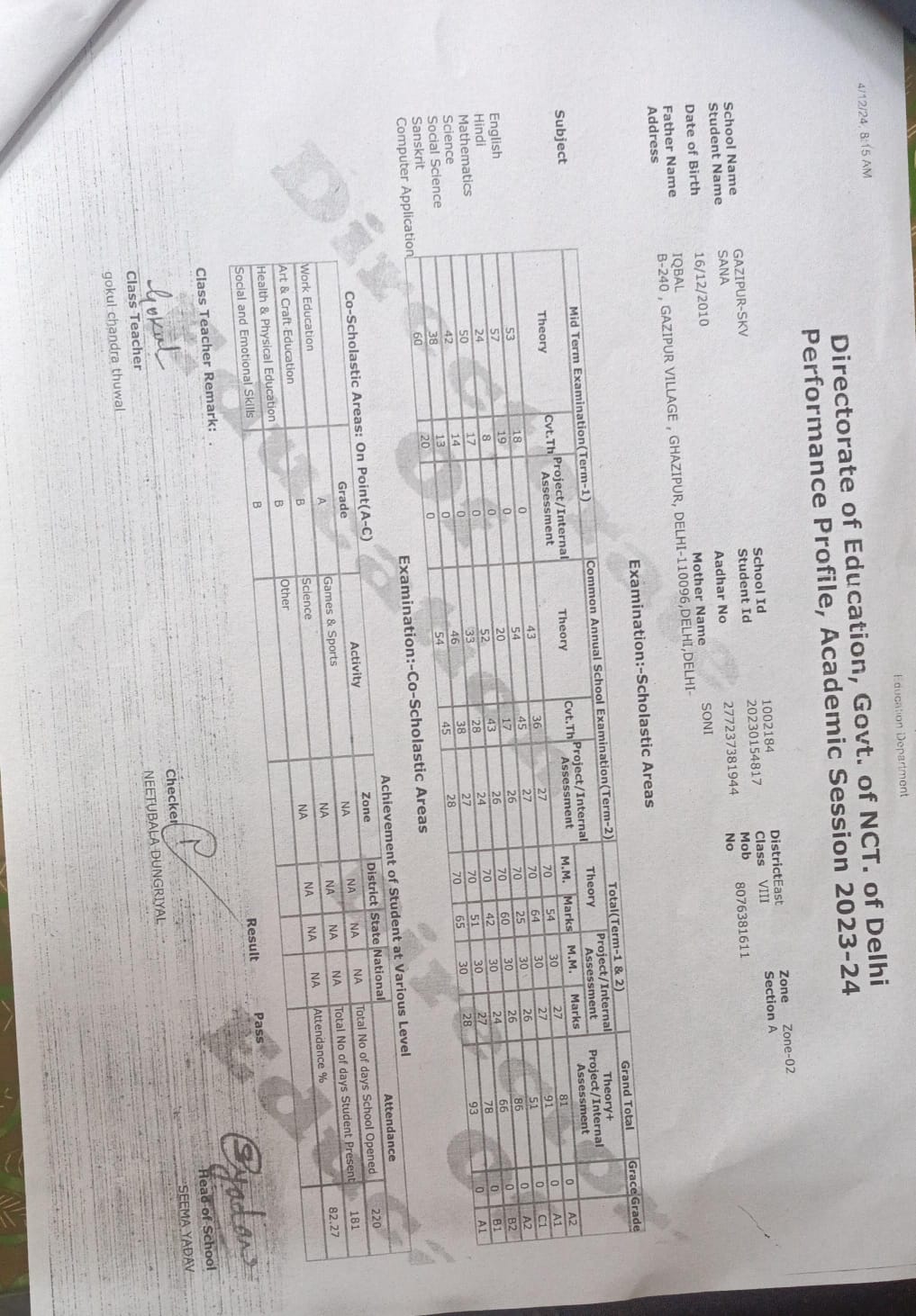 | Exam | Full Marks | Pass Marks | Marks Obtained |