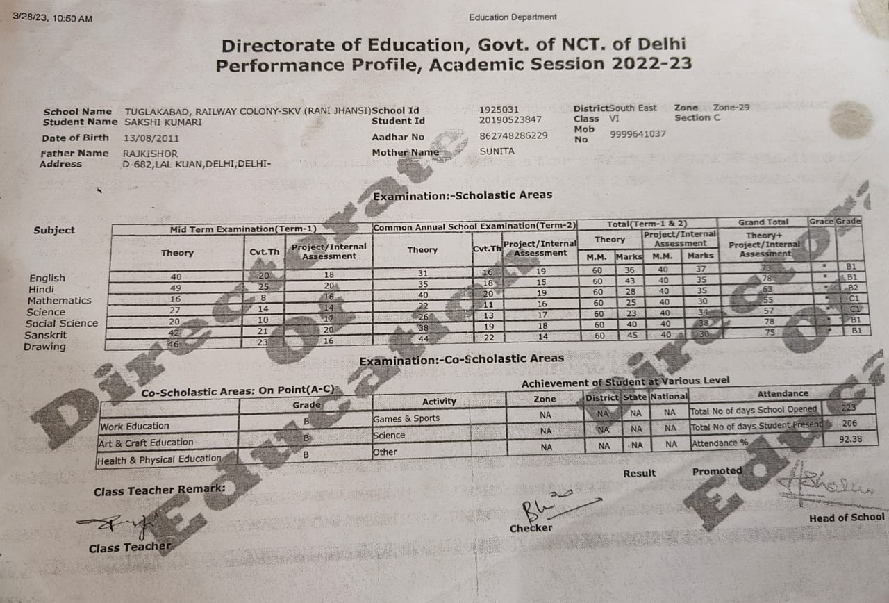 | Exam | Full Marks | Pass Marks | Marks Obtained |
