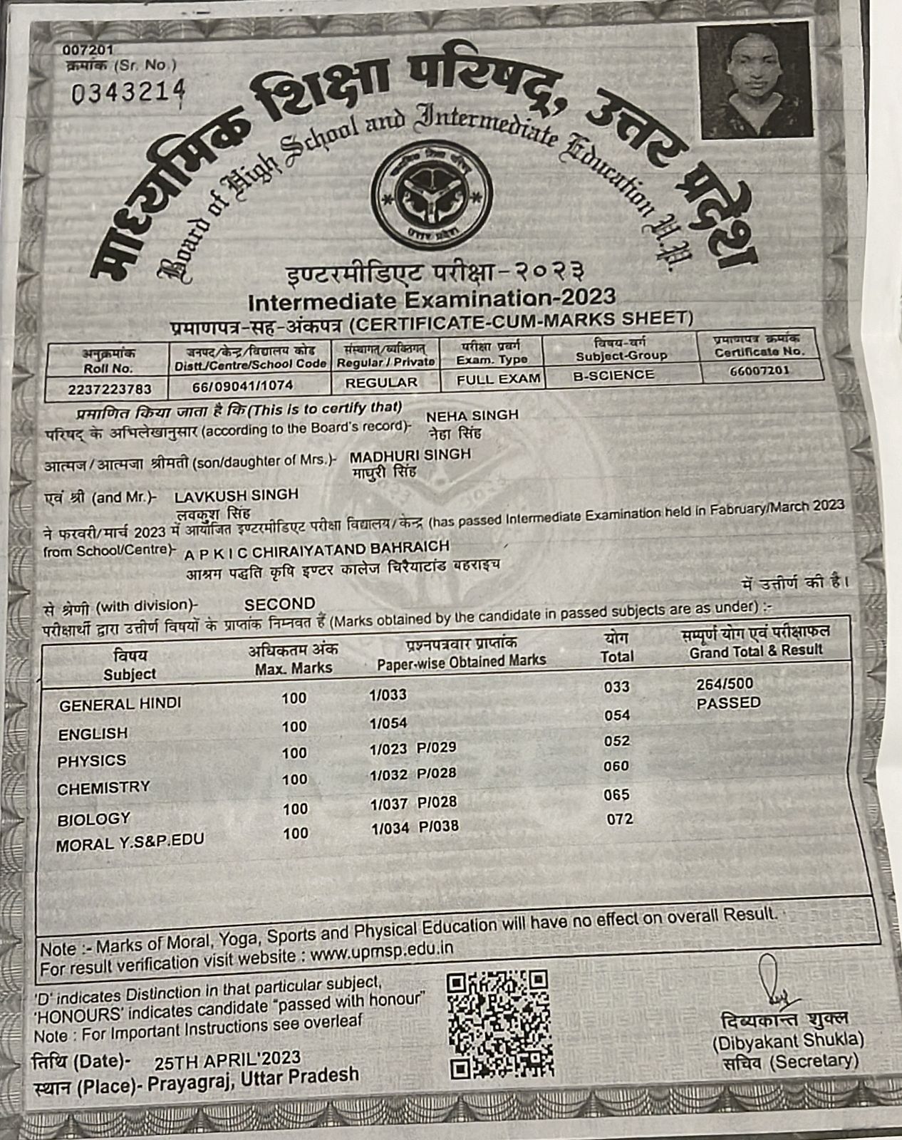 | Exam | Full Marks | Pass Marks | Marks Obtained |