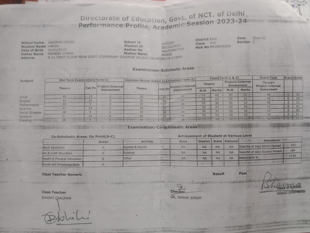 | Exam | Full Marks | Pass Marks | Marks Obtained |