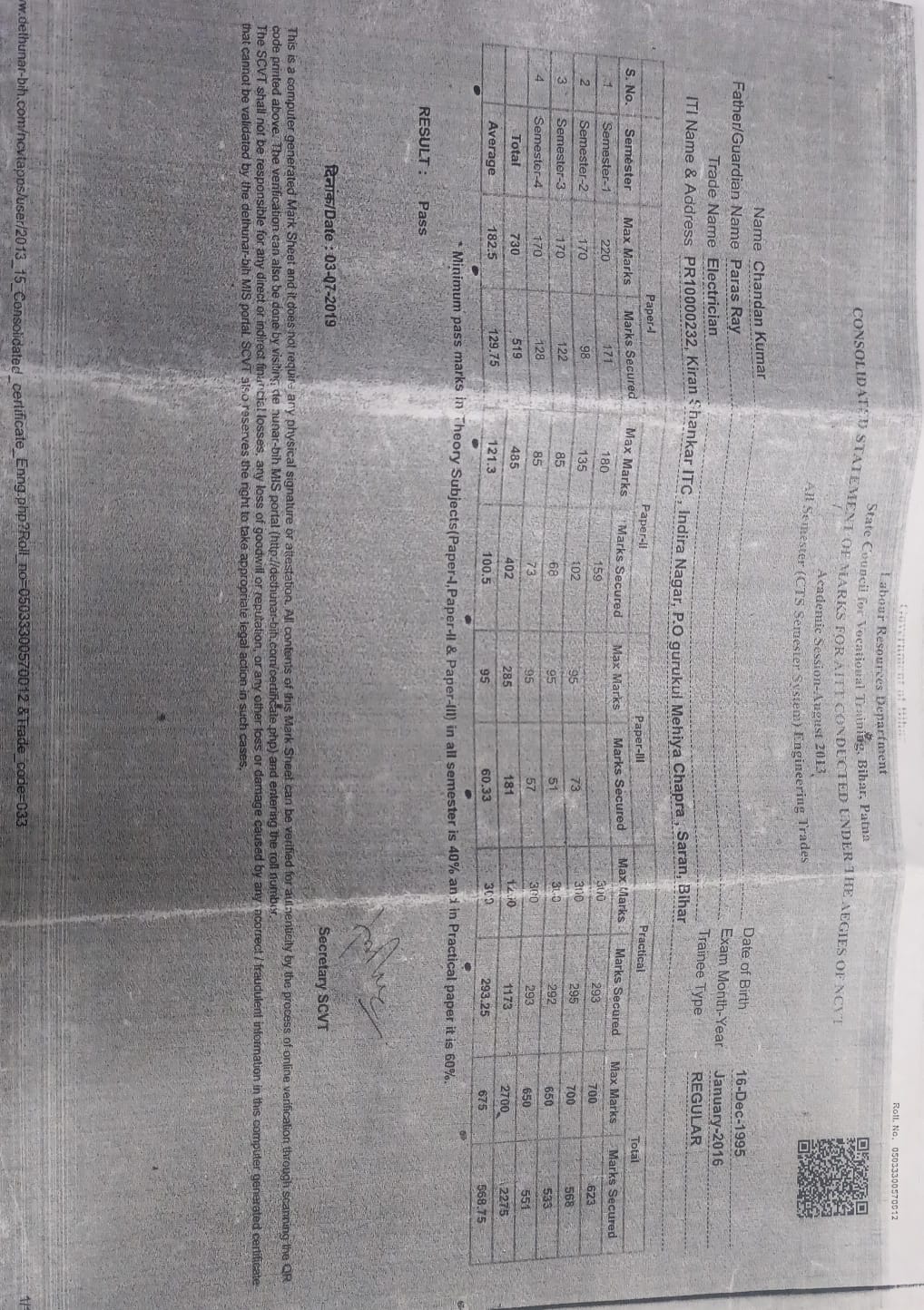 | Exam | Full Marks | Pass Marks | Marks Obtained |