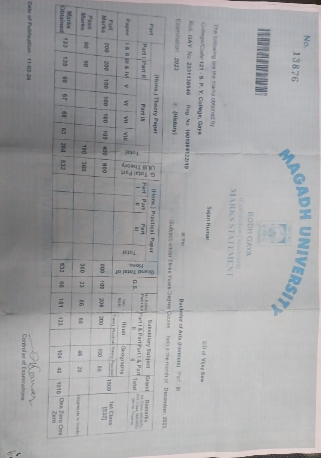 | Exam | Full Marks | Pass Marks | Marks Obtained |