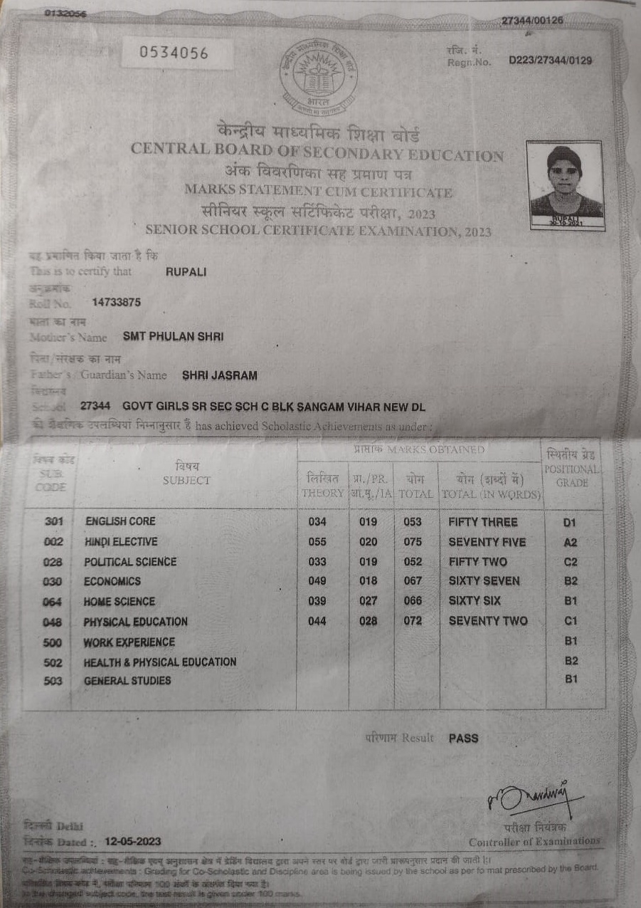 | Exam | Full Marks | Pass Marks | Marks Obtained |